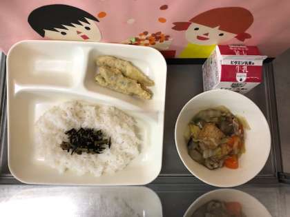 1月27日(水)の給食は、「ごはん」「牛乳」「いわしてんぷら」「あつあげと野菜の煮もの」「ごまひじき」でした。給食(副食のみ)の残食調べの結果は、「いわしてんぷら」「あつあげの野菜の煮もの」「ごまひじき」のお残しがゼロでした♪みんな給食を残さずしっかり食べてくれてうれしいです!