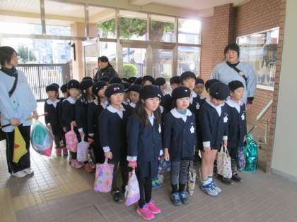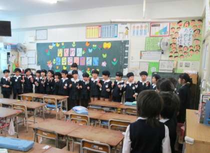 1年生が愛育保育園の子どもたちを学校に招き、交流会を行いました。日頃の学習の様子を見てもらったり、一緒に遊んだりしました。保育園の子どもたちもお礼に手話を交えた歌を歌ってくれました。