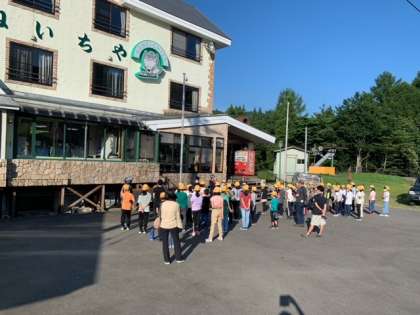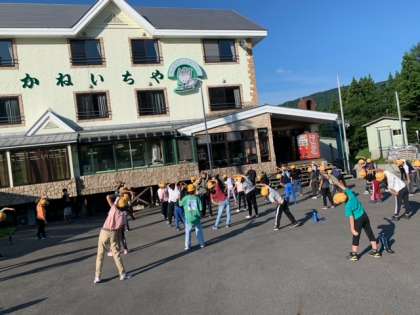林間学習2日目です。昨日の夜はぐっすり眠れた人が多かったようで、朝から協力して布団の片づけなどをしていました。その後は、宿舎前に集合して朝の集いです。みんなでラジオ体操をして、身体のストレッチをしました。今日は朝から夜までハチ高原で過ごすことのできる唯一の日です。昨日に続いて、盛りだくさんの活動の一つひとつに楽しんで取り組んでほしいです。
