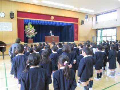 平成27年度の始業式を行いました。いよいよ1年も始まりです。子どもたちも進級し、学級担任もかわり、がんばろうとする意欲いっぱいでした。