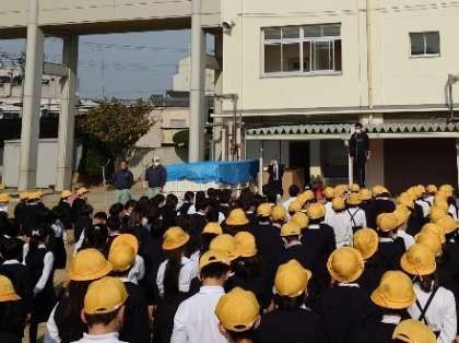 11月17日(水)に、不審者が本校に侵入したという想定のもとで、避難訓練を実施しました。児童は担任の指示をよく聞いて、迅速に避難することができたと思います。集合時には、自分の命を守るための合言葉『いかのおすし』をもとに、「登下校時や休みの日など、学校外で事件に巻き込まれる恐れもあります。一人ひとりが自分で考えて行動しないといけません。」ということを話しました。