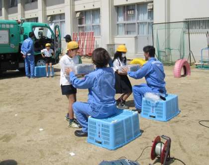 環境事業局の皆さんにゴミの回収など、いろいろなことを教えていただきました。