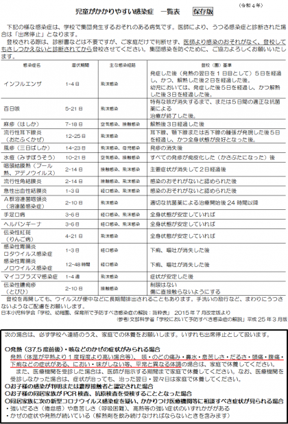 出席停止の期間についても、再度ご確認をよろしくお願いいたします。