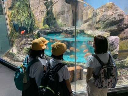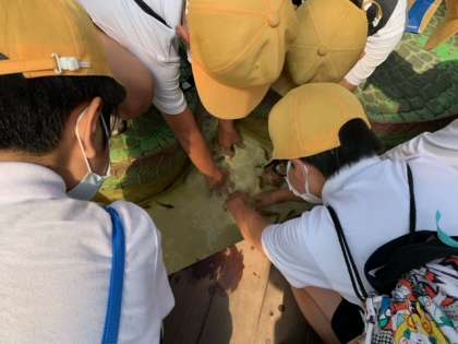 ドクターフィッシュゾーンは、いつ行っても大人気。片手を水につけると、小さい魚たちが群がってきます。