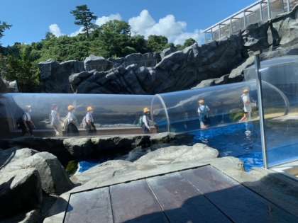 「海獣の王国」では、まるで水面を歩くような巨大なチューブの中を通りました。