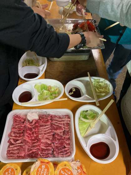 焼き上がったグループからご飯をついでもらっていただきま〜す!