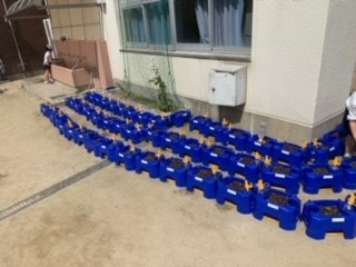 5月10日(水)に生活科であさがおの種を植えました。個人鉢に土を入れて指で小さな穴をあけ、一粒ずつていねいに種を入れました。上からふわっと土をかけて、水をたっぷりやって、作業完了です。