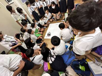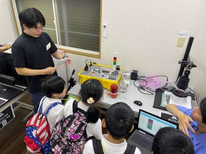 ここで働く人たちは、どのような仕事をしているのかをグループに分かれて、話しを聞いたりプログラミングを体験したりしました。
