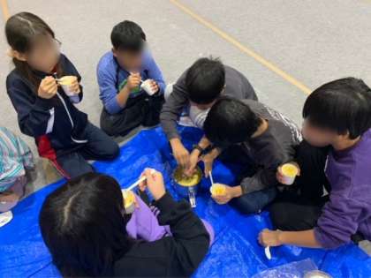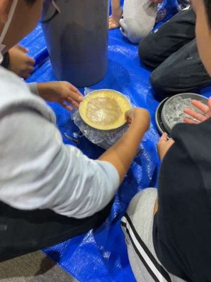 できたシャーベットを、活動班のみんなで、分けて食べました。