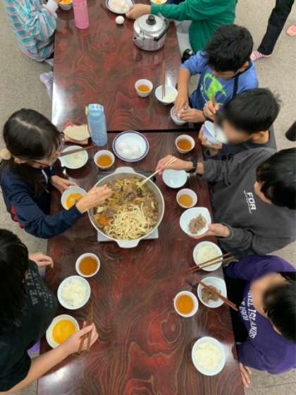 お昼にたくさん活動をしてお腹が空いていたのか、みんな白ごはんをたくさんおかわりしていました。