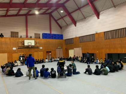 夜の集い係が中心となって、体育館でいろいろなゲームや出し物をしました。