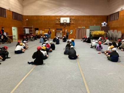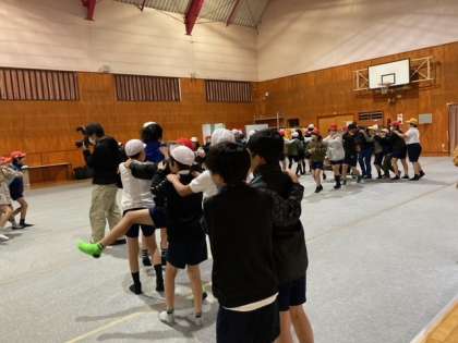 やむを得ず、体育館での活動となりました。