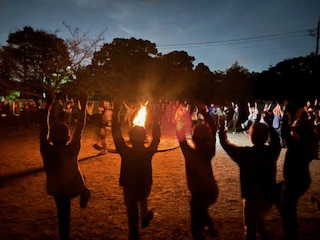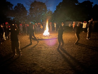 夜のお楽しみ、待ちに待ったキャンプファイヤーです。
