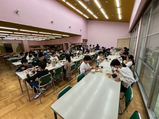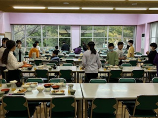 宿舎内での食事は2回目です。昨夜よりも食事係の配膳の手際がよく、準備がスムーズにできていました。