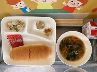 献立は、「コッペパン、牛乳、いちごジャム、焼きシューマイ、中華みそスープ、ツナと野菜のオイスターソースいため」でした。
