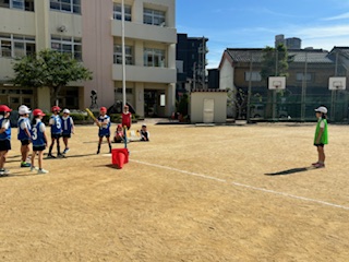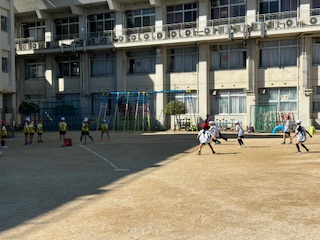 ベースボール型ゲームの学習で、ティーボールに取り組んでいます。チームで作戦を考えて、練習を重ねてきて、いよいよ試合です。