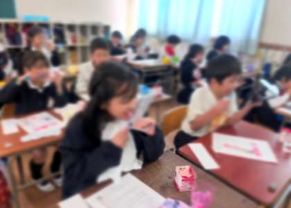 自分の磨き残しを確認し、教えてもらったえんぴつ持ちで歯磨きをしてみんなの歯がピカピカになりました!!