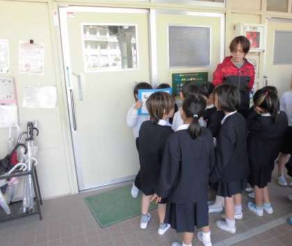 2年生は15日(火)に、生活科の学習で1年生と学校たんけんをしました。