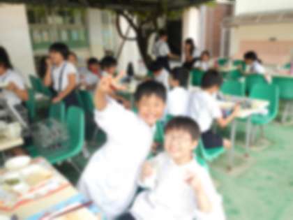 今日は、5年2組が緑の教室で給食を食べました。