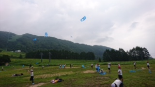 心配された雨はなく、薄日がさす天候です。頑張って作った凧。空高く舞って欲しい。