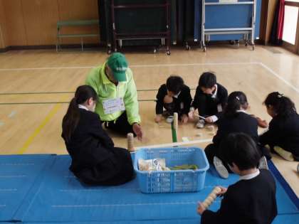 子どもたちはみんなどの遊びにも夢中になって取り組んでいました。「こまが回せた。」「お手玉が初めてできた。」と、とてもうれしそうでした。楽しい昔遊びの会となりました。