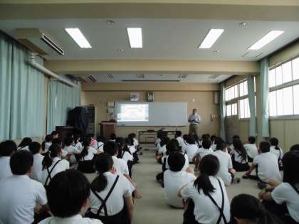 城東警察署の方に来ていただき、少年犯罪についてお話していただきました。子どもたちは真剣に話を聞いて、犯罪に巻き込まれた被害者の方の気持ちを考えていました。