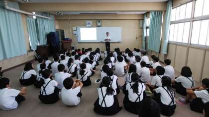校長先生がスリランカを訪問されたときのことを、映像を用いて紹介していただきました。日本と異なる文化や国の雰囲気に子どもたちは興味津々な様子でした。自分たちが当たり前だと思っていることが、他の国では当たり前ではないことを学ぶことができ、大変有意義な学習となりました。