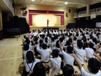 また、演劇教室も実施いただきました。気持ちをリラックスさせる「こんにゃく体操」、良く通る響く声の出し方、聞き取りやすい声の出し方について学びました。11月の学習発表会で生かしてくれることと思います。お楽しみに!