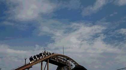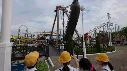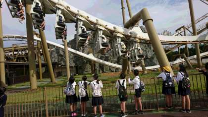 快晴のパルケエスパーニャ。グループごとにおめあてのアトラクションで存分に楽しんでいます。