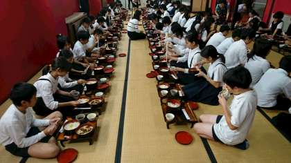 修学旅行最後のお昼をいただき、退舎式では二日間お世話になった「海月」さんに感謝の気持ちをお伝えしました。