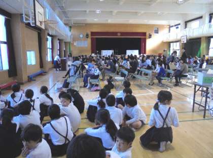 10月25日(木)に就学時健康診断がありました。新1年生になる子どもたちを連れて、5年生が視力、聴力、眼科、歯科、耳鼻科、内科などの健診会場を優しく手をひいて回りがんばっていました。