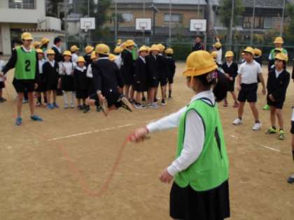 来週から始まるなわとび週間に向けて、榎並ファミリー班ごとに大縄をとび、協力して楽しみながら運動することができました。