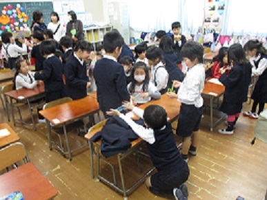 2月6、7日に野江幼稚園と愛育保育園・まつのはな保育園の子どもたちを榎並小学校に招待し、わくわくスタート交流会を行いました。国語の音読の様子を見ていただいたあと、一緒にあやとりをしたり、歌ったりして交流しました。