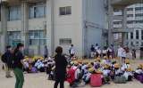 服を着替えて、次は魚つかみ!泳いでいる魚を手でつかむのは初体験という児童が多く、...