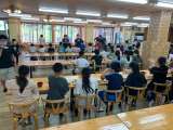 少し早めに、林間学習最後の昼食をとりました。メニューは、五目山菜ご飯とチキンナゲ...