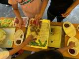 1日目の晩ごはんの時間になりました。登山や魚つかみで身体をめいっぱい動かして、み...