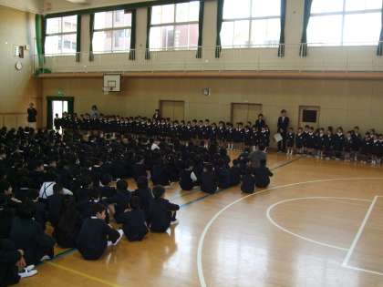 始業式では、校長先生から自分のいいところを伸ばそうという話がありました。その後、学校全ての教職員の紹介がありました。学年によっては、大きな歓声が上がる場面もありました。