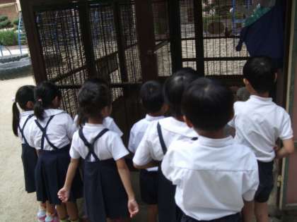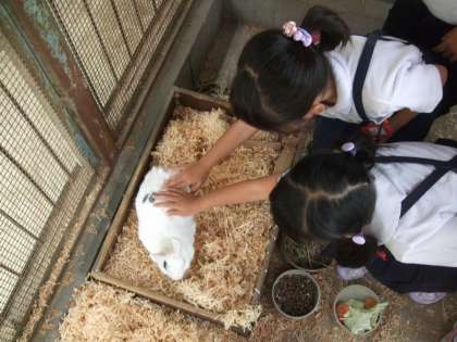 飼育小屋でウサギの観察をしました。
