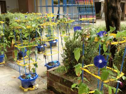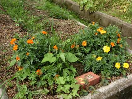 児童が毎日声をかけながら水をやっているアサガオやトマトやナス、マリーゴールドやホウセンカなども大きく育ってきています。