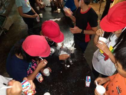 やっとのことで、アイスクリームが完成しました!みんなで分けて、美味しくいただきました。