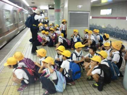 地下鉄とモノレールを乗り継ぎ、目的地である万博記念公園に向かいましたが、ワクワクする気持ちを抑え、ホームや車中では行儀よく過ごしているようです。