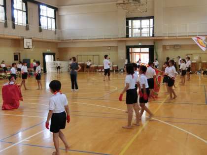 ゴーゴーゴーの振り付けをみんなで考えたり、開閉会式の打ち合わせを行っていました。暑い中、がんばっています。
