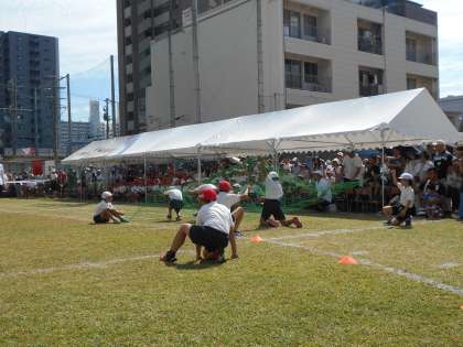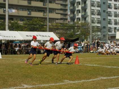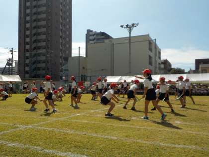 4年生は、ダンスと台風の目と障がい走を行いました。息を合わせて頑張りました。