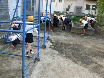 2年生は、学習園を中心に清掃を一生懸命していました。