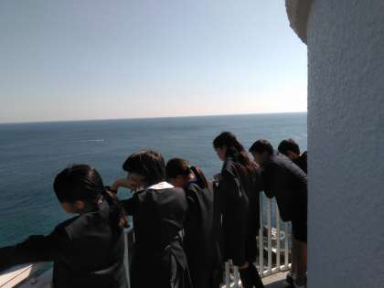 無事に大王崎の燈台に到着しました!上まで登って見ると、海の大きさに圧倒されました。これからスペイン村です!