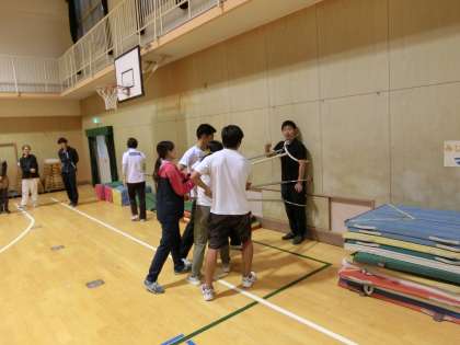 万一に備え、不審者侵入時に安全な行動がとれ、また避難の仕方を知る訓練を城東警察署防犯係のご協力で行いました。それに伴い、前日には教職員がさすまた訓練を行い、心構えや防御の仕方、さすまたの使い方など実践に即した研修をしていただきました。