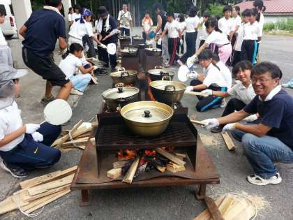 この日のために、家庭科でも包丁の使い方や野菜の切り方などを学習してきたので、初めての野外炊飯としては順調に作業が進んだようですね!