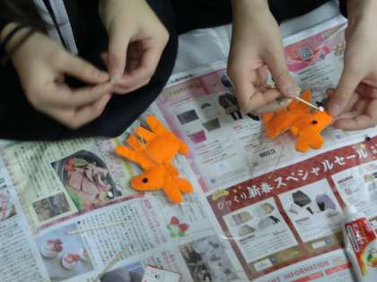認知症は脳の病気であることや、困っている高齢者の方への接し方など、グループで話し合いながら、学習しました。最後は、オレンジの馬のグッズを作成しました。