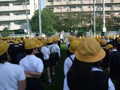 今朝は、久しぶりに運動場で朝会を行いました。