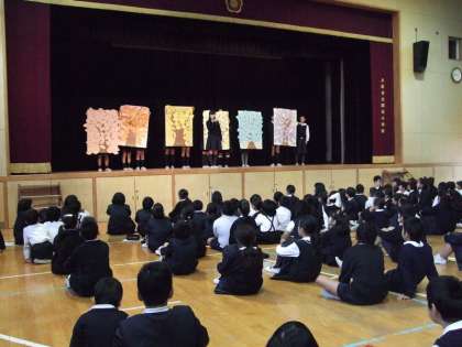 図書委員会の取り組んでいる「読書の木」の途中経過が発表されました。
